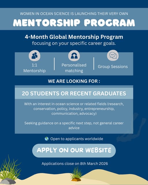 Women in Ocean Science is launching a Mentorship Pilot 2026 — a 4-month, global, goal-driven mentorship program designed to support early-career women in ocean science and related fields.